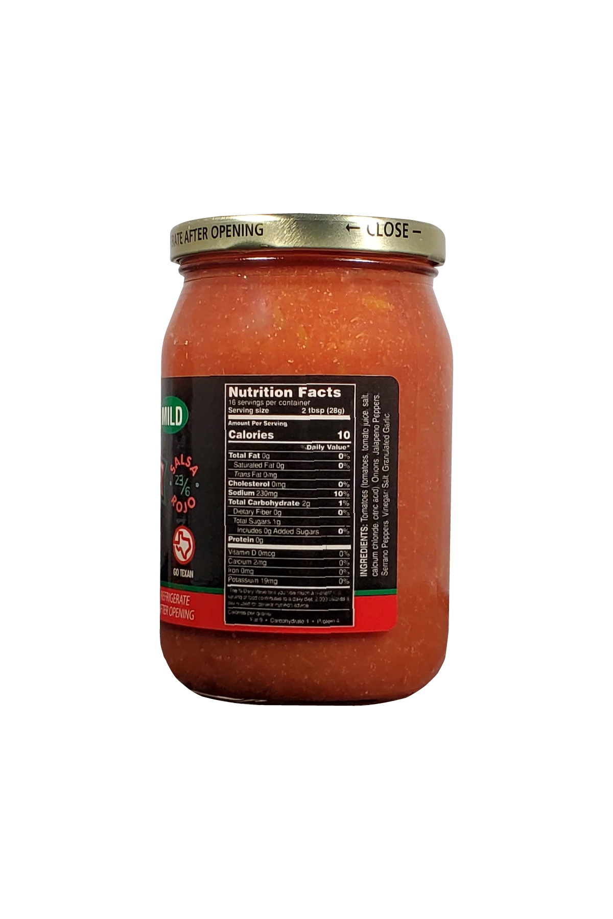 A savory salsa with fresh serranos and fresh jalapenos. Mild heat. 16oz