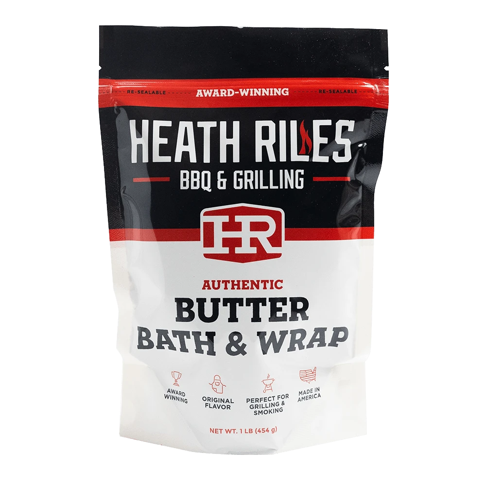 Heath developed it to become more consistent in ribs at contests. It’s a unique blend of butter buds, brown sugar, honey powder, and spices that you mix with apple juice. Once mixed simply wrap each slab of ribs or boston butt with the mixture.
