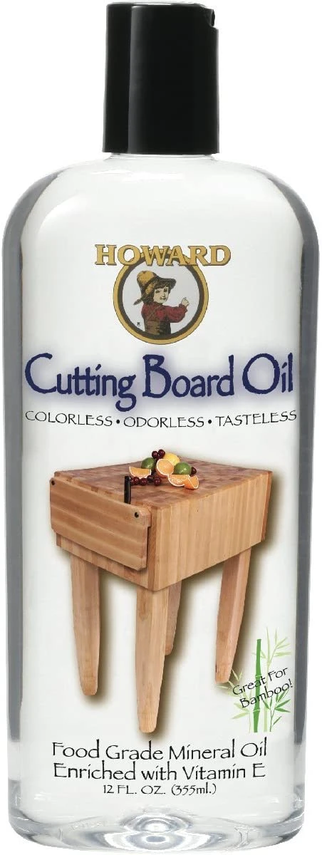 Howard Cutting Board Oil is made with clear, odorless, pure food-grade mineral oil. The penetrating quality of food-grade mineral oil brings out the depth of grain in wood and helps prevent drying and cracking. Cutting Board Oil is perfect for the initial “oiling” or “seasoning” of cutting boards and butcher blocks.