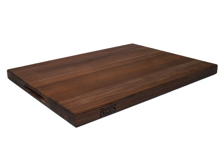 This unique John Boos Reversible cutting board is made from American Black Walnut that showcases complex brown and black highlights via the edge grain construction. At 24 x 18 x 1½ inches in size, this large cutting service will handle all your chopping, slicing, and mincing needs.