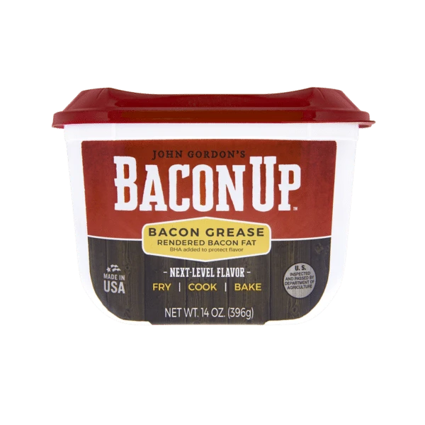 - Bacon Up is 100% authentic bacon grease, from high-quality bacon rendered in John Gordon’s traditional smokehouse process