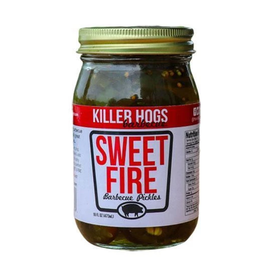 Killer Hogs BBQ made an always-crispy pickle that is packed with flavor. Killer Hogs Sweet Fire Pickles are sweet with a serious burn.
