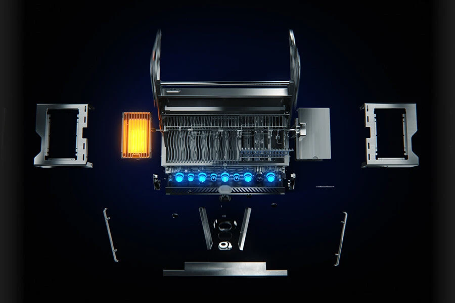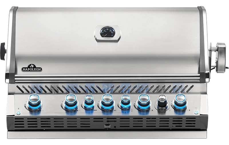 A gourmet outdoor kitchen deserves to have a big and beautiful grill. The Built-in Prestige PRO™ 665 Propane Gas Grill with Infrared Rear Burner features seven burners of grilling bliss. Durable stainless steel features chrome accents for luxury and durability. Grill after dark with LED Spectrum NIGHT LIGHT™ Control Knobs, with near limitless color possibilities. Additionally the SafetyGlow feature turns the lights red when a burner is in use. Know which burners are lit so you can get the perfect sear, or ideal indirect grilling temperature. The oven-like performance of this grill allows you to bake and roast with ease, sear over high heat, and the rear burner makes delicious rotisserie meals in no time. You’ll know it’s a Napoleon with the iconic WAVE™ cooking grids and proximity lighting. . The integrated smoker tube and dedicated burner can even turn this grill into a smoker, while interior lights let you grill well past dark. Perfect and professional, the PRO™ 665 Built-in Grill Head is the perfect grill for your outdoor kitchen.