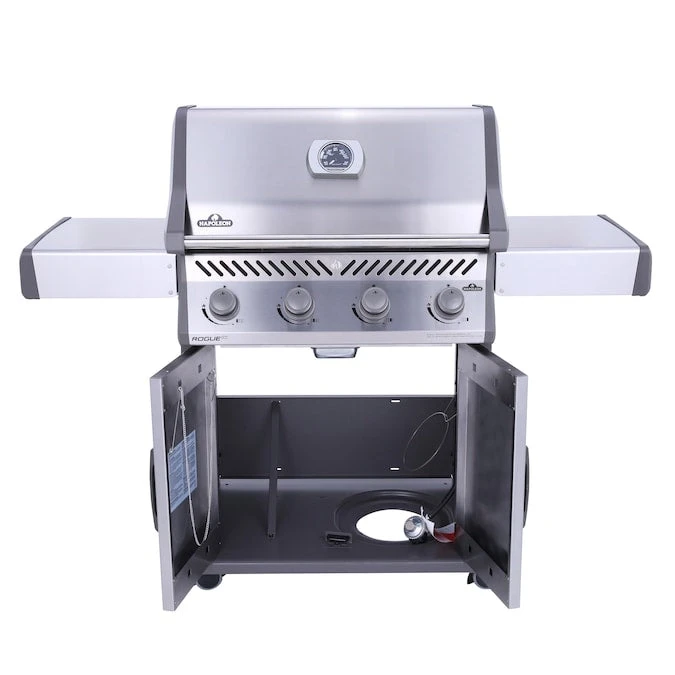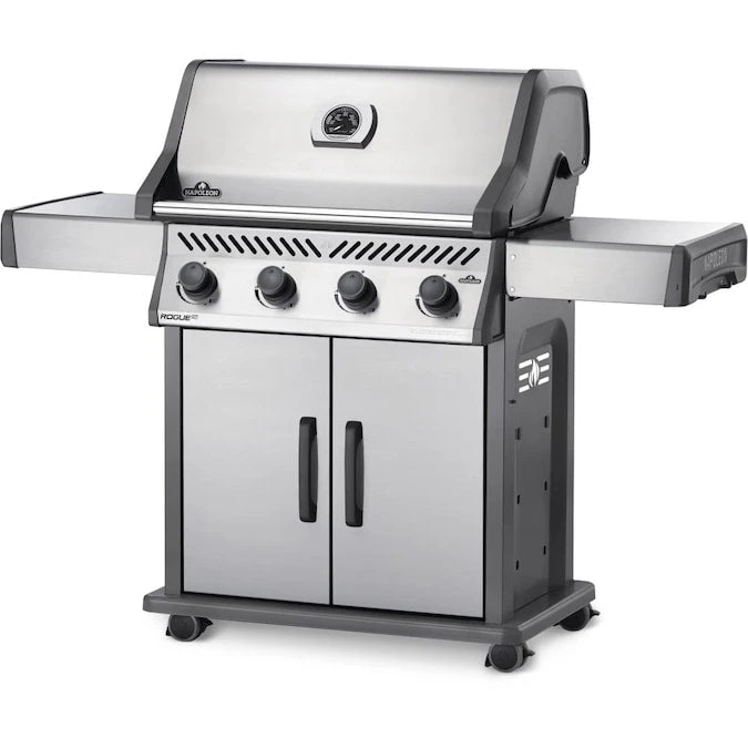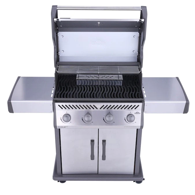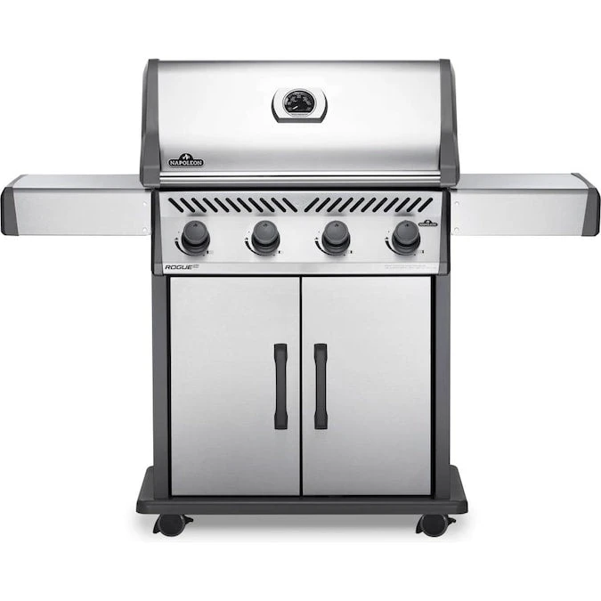 BBQ your way with high-quality grilling at an affordable price, the Rogue XT 525 propane grill with bonus smoker box by Napoleon is a versatile addition to any backyard. This grill is made from durable stainless steel and features folding side shelves for extra space. Easily move to where the action is with the locking casters. Inside, dual level sear plates vaporize drips and four tube burners light instantly with the jet fire⢠ignition system. Feed a crowd; with 525 square inches of total cooking area. You’ll know it’s a Napoleon with the iconic porcelain coated cast iron wave⢠cooking grids for those distinctive sear marks. BBQ your way and use this grill to sear, smoke, sizzle, bake, grill, roast and authentic charcoal grilling. With the bonus sear plate smoker box, you achieve true smoke flavor with an integrated smoking system. Grill different and go rogue® with the rogue® XT 525 gas grill.
