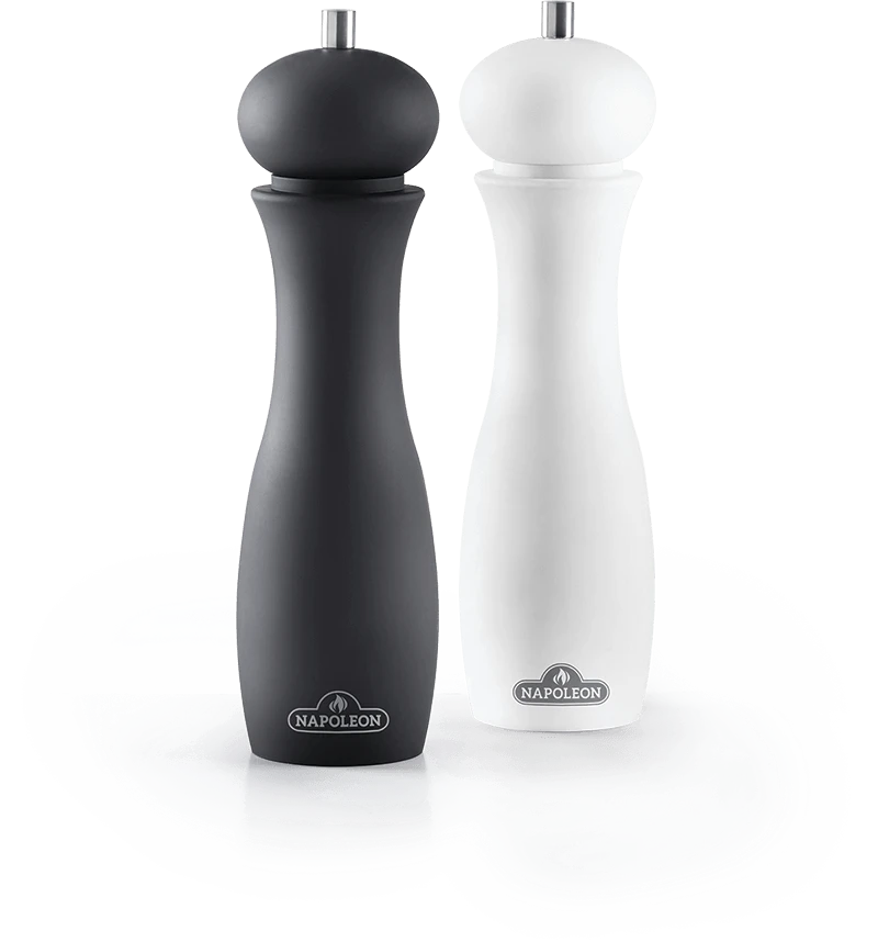 Add the perfect touch of spice to your next grilled meal with the Salt and Pepper Grinder Set from Napoleon. Large and luxurious salt and pepper grinders feature a matte, soft-grip surface that is stylish enough for the table and easy to clean when cooking gets messy. The high-quality ceramic mechanisms are built to last for years. Use the top adjustments to produce coarse or fine seasoning.