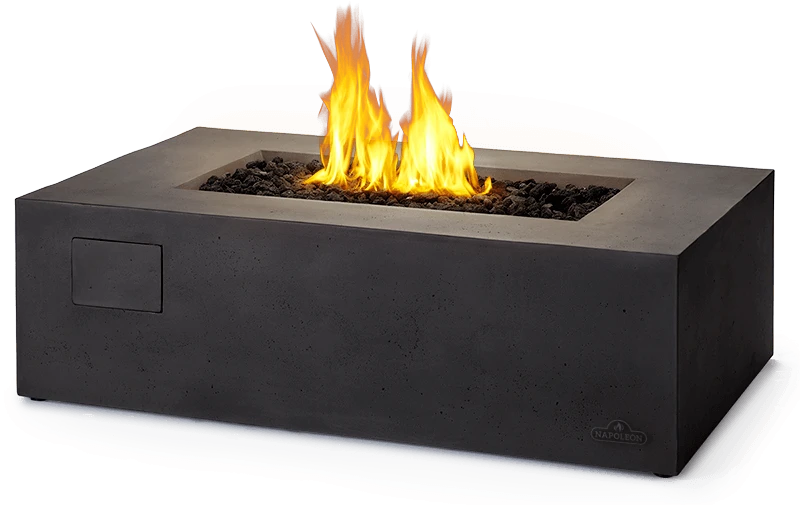 Extend the amount of time you can enjoy the outdoors with this modern alternative to a fire pit. The Napoleon Uptown Patioflame® Table is a rugged, and solid looking linear fire pit made from durable cast aluminum that looks like formed concrete. Stylish black lava rock media fills the ember bed and creates a delightful flame pattern. This Patioflame® table is lightweight and can be placed anywhere in the backyard. The easy start ignition is hidden behind a flush mount, touch latch panel for a seamless look. For your peace of mind, the thermocouple valve automatically shuts off the gas when the flame is extinguished. Enjoy the great outdoors even during chilly weather with this modern outdoor heating alternative.