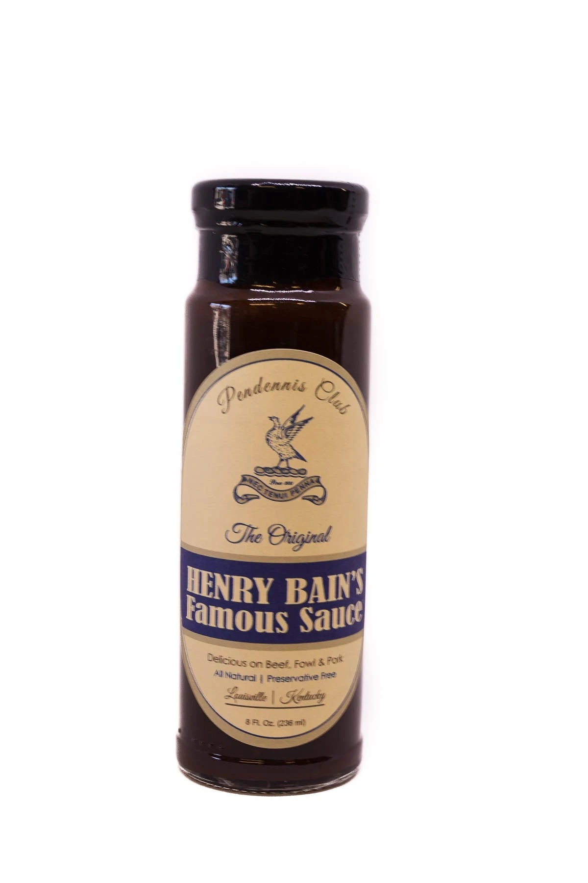 For over 100 years, the Pendennis Club has served Henry Bain’s Famous Sauce. Named for a headwaiter who spent 40 years working at the club, Henry Bain created this legendary sauce for local game, beef and other meats. Full of rich and tangy flavors of tomato sauce and vinegar combined with sweet chutney and pickled walnuts made it an instant favorite. Delicious on tenderloin, cocktail meatballs or spread over cream cheese for an appetizer.