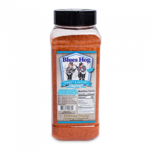 Blues Hog Sweet & Savory Seasoning is a blend of everything you’ve been looking for. Sweet & Savory offers a sweet flavor profile with a light smoky taste followed by a kick of heat.