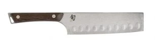 Nakiri is simply Japanese for “vegetable knife.” Once you get the Shun Kanso Nakiri in your hands, you’ll soon see why both professional chefs and good cooks around the world choose this beautiful and extremely useful tool whenever they have fruits or vegetables to prepare. With its straight blade, edge, and spine, the nakiri isn’t rocked like a chef’s knife. Instead, use a simple push cut and enjoy the clean, swift work it makes of vegetables of all kinds. For daily salad preparation or slicing vegetables for stir-fry, it can’t be beat. Finely dicing onions is fast, easy, and with the Shun Kanso Nakiri’s blunt end, safer, too. The hollow-ground indentations in the blade help food release from the blade more easily, too.