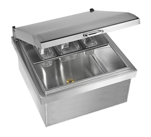 This premium, party-ready drop-in cooler accommodates up to 60 bottles and 25 pounds of ice. The insulated bin and gasket-sealed lid keep contents ice-cold into the wee hours. Sleek, geometrical design shows off our signature polished accents and seamless welds.